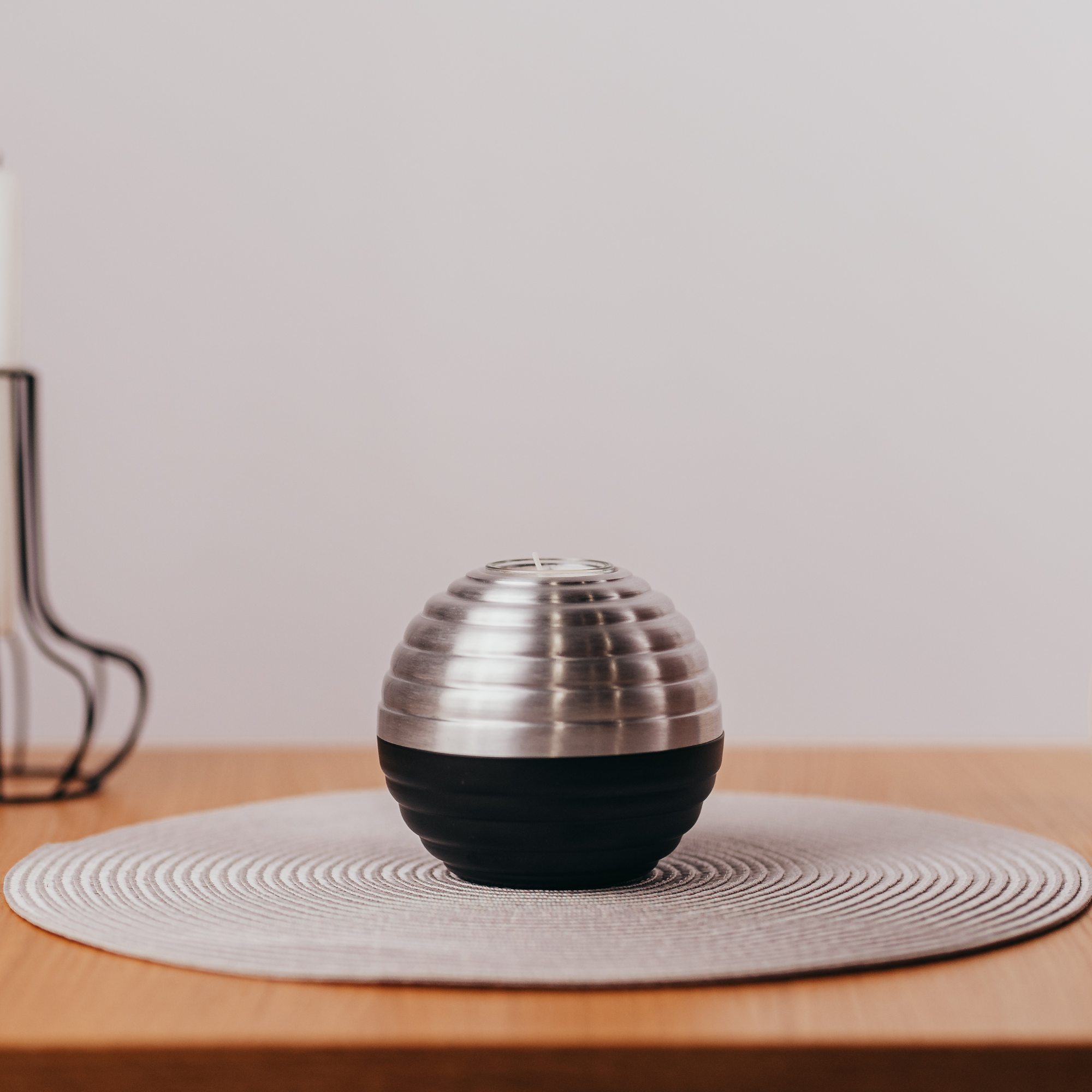 Mit der Metallurne Wave ist es Ihnen möglich, einen Teil der Asche aufzubewahren und zur Erinnerung eine Kerze anzuzünden.